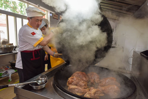 经过多道工序,烧肉起锅的瞬间,一股香气扑面而来
