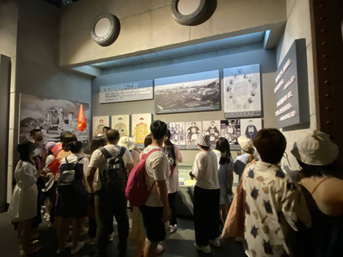 甲午战争博物馆陈列馆内游客认真参观