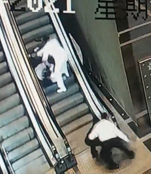 “当时那位老人和两个孩子都摔倒了。”赵仁田父亲记得,有个孩子的裤脚被卷进扶梯的缝隙里,“儿子去扶他,我也跑过去扶老人和另外一个孩子,酒店工作人员随即按下了电梯的急停键。”