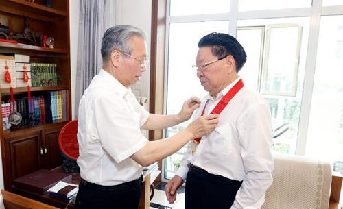 刘家义为正省级老同志颁发纪念章 本组图片据《大众日报》