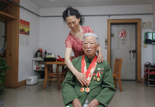 满头银发,步履从容,讲起战争岁月时逻辑清晰,在老兵杨茂森身上丝毫看不出他今年已经95岁高龄了。年少时在家乡高密亲见日军侵华的种种残暴行为,参军入伍立志保家卫国,参加过济南战役、淮海战役、渡江战役等,是一名在枪林弹雨中抢救伤员的卫生员。如今,早已离休的杨茂森还在社区发挥余热,无私奉献,几十年如一日,医术精湛的他免费为居民针灸、推拿。风风雨雨九十余载,杨茂森说,是党培养了我,我是党的孩子。