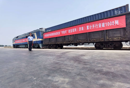 6月2日上午,济南欧亚班列第1000列开行仪式在董家镇站铁路货场举行