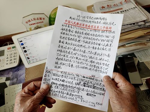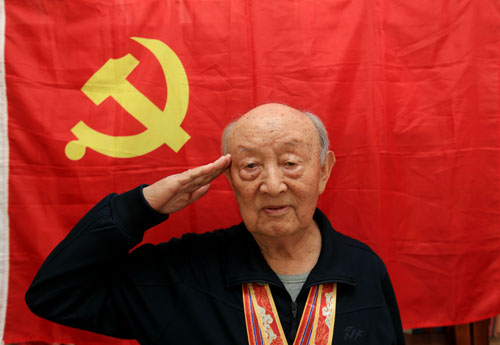 现在回想起以往的战斗经历,王鹏程感慨良多,他说想想倒在百石山上的战友,想想埋在朝鲜战场上的无名英雄,他们为保家卫国献出了生命,我们要永远铭记。“我这个年纪仍要坚持学习不掉队,这是当年入党时下定的决心。”王鹏程看着鲜红的党旗,眼神坚定。
