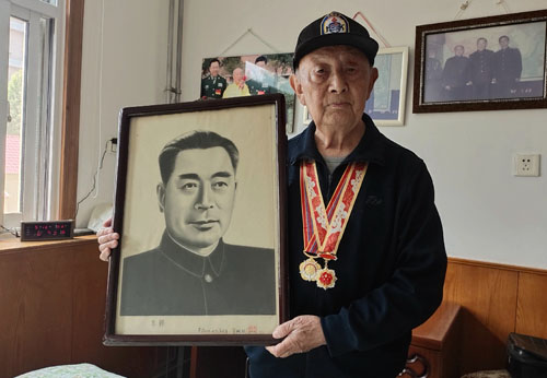 就这样,王鹏程和200多名同乡一起参军,雄赳赳气昂昂,跨过鸭绿江,奔向朝鲜战场。从此,他战斗了三年。周总理摸过的伤疤就是王鹏程在朝鲜战场的光荣印记。