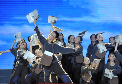 济南市市中区泉秀学校小学部表演的舞蹈《小报童之歌》 记者 王晓峰摄