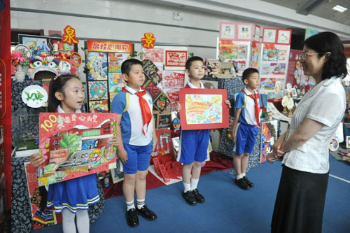 市中学子展示美术书法科技作品 记者王晓峰摄