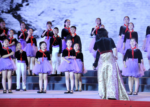 济南育秀中学小学部表演合唱《抗日新小唱》 记者王晓峰摄
