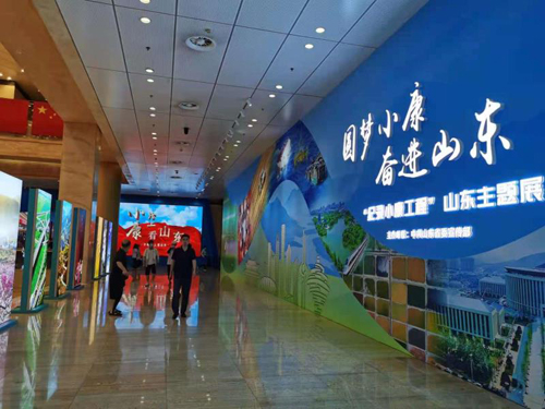为纪录好、反映好全面建成小康社会的伟大壮举,为民族复兴书写“信史”,为新时代中国留下小康“印记”,山东积极推进“纪录小康工程”,结合实际创新举办“纪录小康工程”山东主题展。主题展包括“关怀”“历程”“变迁”“攻坚”“憧憬”五大板块,通过图片、视频、场景还原、实物展示等多种形式,运用多媒体互动知识扩充屏、环幕VR等新技术手段,通过330余幅照片、100余件实物和10余个视频,多角度展示山东全面建成小康社会的奋斗历程,特别是党的十八大以来,省委团结带领全省人民,高质量打赢脱贫攻坚战、齐心协力奔小康的光辉历程和巨大成就。