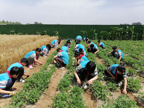 小学生们在劳动实践基地参与除草实践活动 (受访者供图)