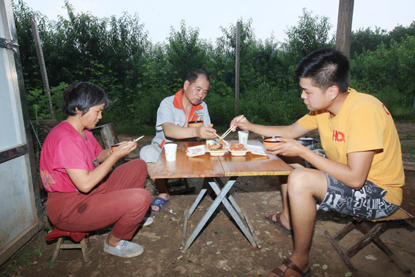 刘增辉告诉记者,“济南长清这边的人好,花也多,每年春天,当我们家乡的油菜花开败以后,我就会带着父母来这儿养蜂。”据刘增辉讲,他初中毕业后就开始养蜂了,至今已六年,每年都会在春末夏初的时候来济南长清。他的父亲是聋哑人,妈妈患有智力障碍,他是家里的独子,早早地便承担起了家庭的重任。刘增辉目前养了120箱共约400万只蜜蜂,年收入十多万。“养蜂很辛苦,尤其是每年换地装卸车的时候最容易被蜜蜂蜇。”刘增辉说,“但养蜂也是个自由的职业,可以带着爸妈,我们一家人形影不离,甜蜜又幸福。”