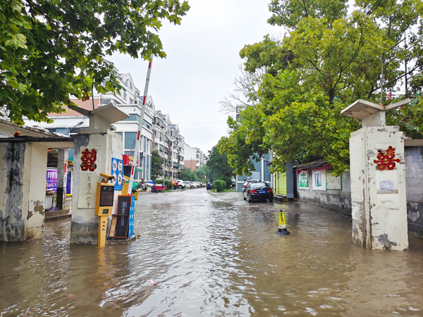 昨日,济南天桥马家庄100号怡苑新区门口的积水已达半米