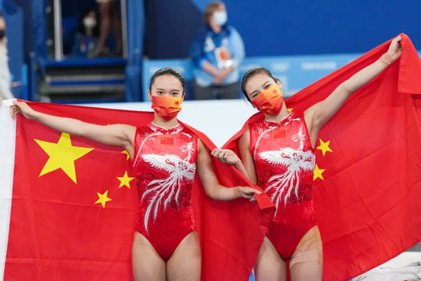 商报消息 7月30日,2020东京奥运会蹦床体操女子组决赛在有明体操竞技场举行。中国选手朱雪莹、刘灵玲分获冠、亚军,英国选手获得第三名。