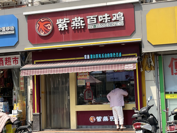 目前紫燕百味鸡在山东市场终端门店数量已超过400家,这是济南一紫燕百味鸡门店