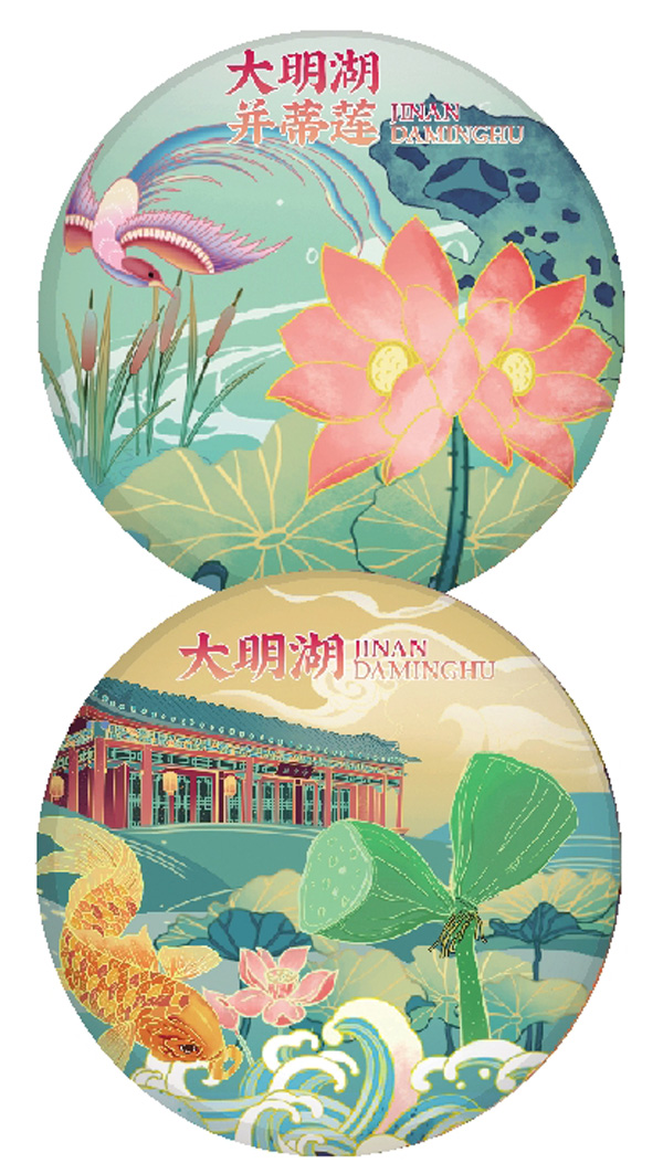 值得一提的是,相比于其他并蒂莲文创,天下第一泉文创中心的并蒂莲文创不仅以“并蒂莲”为创作主体,还将大明湖的雨荷厅、柳树、锦鲤等元素融入其中。“通过大明湖元素的充分融入,打造代表济南与大明湖元素的并蒂莲文创。”