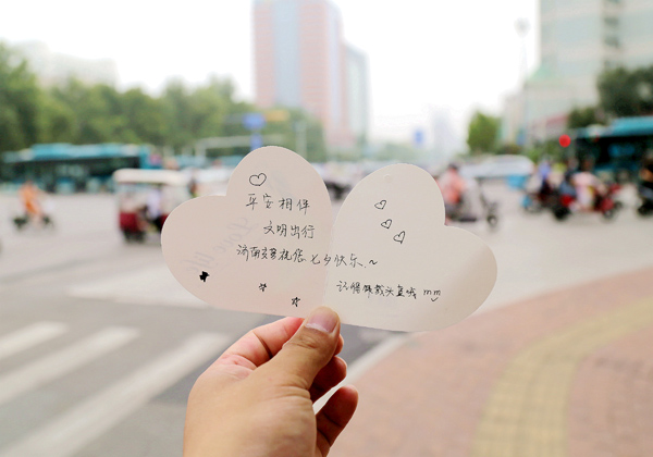 济南市中交警大队向佩戴头盔的电动车驾乘人赠送平安玫瑰和温馨祝福卡片,花式劝导提倡安全出行。