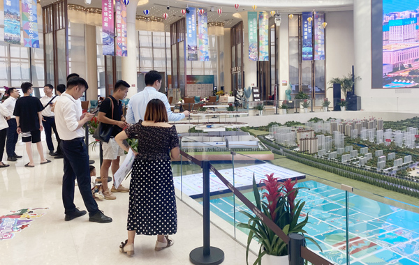 济南某楼盘售楼处内,购房者正在了解楼盘信息