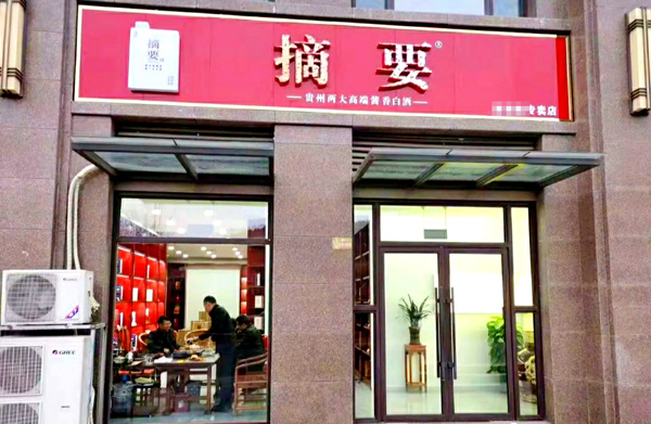 记者走访了济南市场发现,除金沙酒业布局的线下体验店外,街头多家悬挂着“摘要”广告牌的小型烟酒门店,并不销售“摘要”酒。“我们店里卖得都是中低端的酒水,上千元的酒卖不动,这广告牌都是品牌方的人给我们安装的。”省城花园路一家酒水专卖店的负责人孙先生告诉记者。