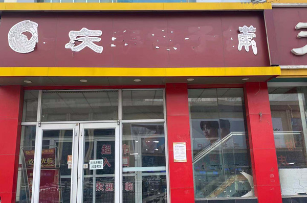 不过,记者注意到,位于商铺一排中有两家门店大门紧闭,一家名为天龙超市,另一家招牌已掉落了一半,依稀能看见原为庆丰包子铺。透过玻璃门可以看见,店内已经搬空,包子铺门口贴着“庆丰包子铺搬迁,本店暂停营业”的提醒。商铺的搬迁是否与天龙大厦的拆迁有关?对此,一位附近商户告诉记者,“超市和包子铺一年前就已经搬走了,是因为经营问题。”此外,他们也均表示并没有收到拆迁的通知,目前都是照常营业。对于未来的变化,商户们都表示不了解。