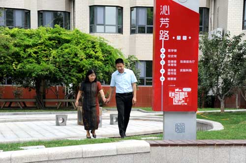 山东省实验中学东校区语文组的“夫妻档”教师——李玉娇和韩玉坤 记者 王晓峰 摄