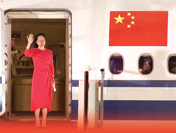 9月25日,中国公民孟晚舟乘坐中国政府包机返回祖国。这是党中央坚强领导的结果,是中国政府不懈努力的结果,是全中国人民鼎力支持的结果,是中国人民的重大胜利。