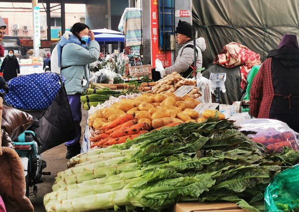 “去年那场大雪,刚开始下的时候,来买菜的人还不多,雪越下越大,一直不停,小区的居民就陆陆续续地来买菜了。除了囤点土豆、白菜,绿叶菜也是抢手货。”小周说,那天清早下了雪路上滑,他跟妻子就没出门,“当时,想着前日还有些品相好的菜没卖完,碰上下雪肯定买菜的人也不愿意出去,结果,后来像茼蒿、奶白菜这样的都卖没了,后边来的还陆续地问怎么没菜了。”