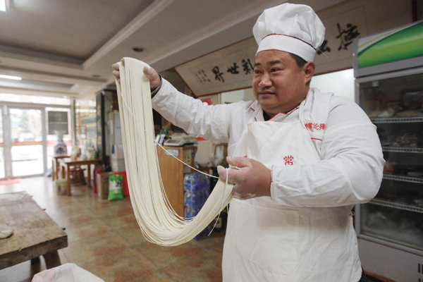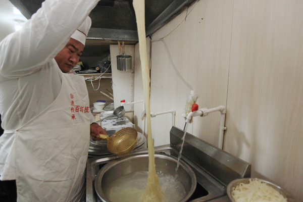 摔面要一边摔一边抖动 本版摄影记者 周里