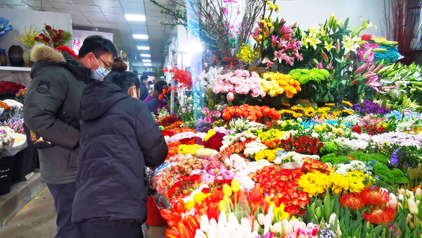 “散户和一些花店是不敢囤货,我们是囤不到货,早在10天前,我们就开始为情人节备货了,货源很是紧张,除了几个老顾客预订的,我们手头上其实也没有多少货了。”花商张国军说着,指了指摊位上的花,“货就这些了,后边库里的也不多了。新货应该明天才会到。现在,不少商家摊位上的玫瑰都是年前的存货。”