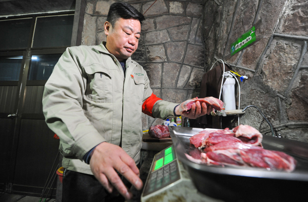 周继生今年47岁,93年来到动物园工作,饲养过大象、丹顶鹤、东方白鹳,2010年调到狮虎山担任队长,现在管理5个保育员和14只老虎的生活起居。