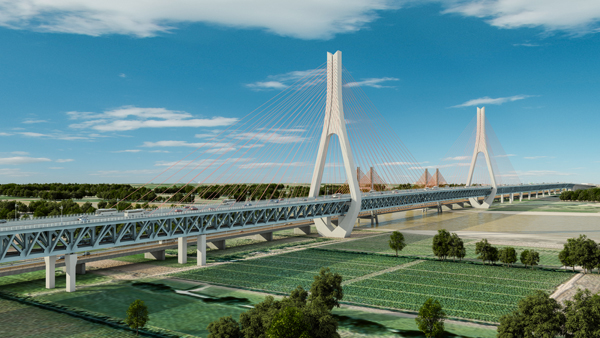 值得关注的是,新建黄河大桥将与老桥并行建设,并通过高架与零点立交互连,集合了高速公路、枢纽立交、黄河大桥、市政道路、轨道交通等,是“超级”交通综合体工程,将刷新“跨黄”桥梁纪录。该桥长约2.5公里,为公轨分层合建桥梁,上层为双向八车道公路,下层为双线轨道交通。主桥将采用主跨488米双塔双索面钢桁梁斜拉桥,桥塔采用宝瓶型,总高接近170米。