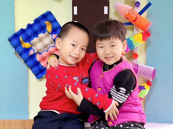 济南纬二路幼儿园的孩子们上演“爱的抱抱”