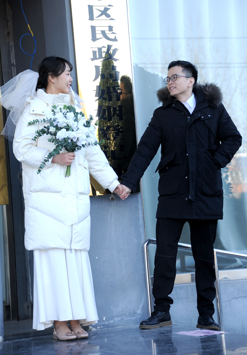 “他领完证就赶去单位了……我们说好了,等到周末再好好庆祝。”26岁的小关边说边指挥闺蜜为她拍照,“男主人公不在,但是我还是要记录一下这个特殊的日子、特殊的时刻。”