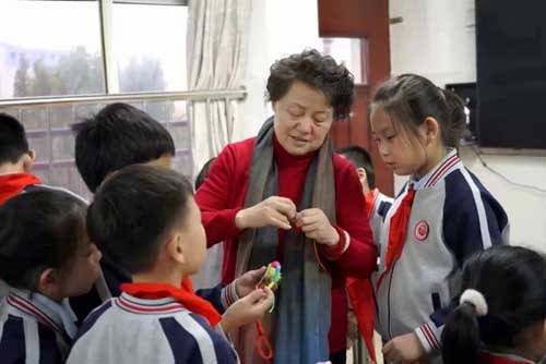 日前,济南市历城区洪家楼第三小学二(3)中队邀请了非遗“尹式结艺”传承人尹崇芹开设了“绳结艺术”特色课。课堂上,学生们认真聆听老师的讲解,趣味十足的“绳结艺术”特色课让同学们切身感受了中国传统技艺的魅力,也让学生们对于非遗文化充满热情,二(3)中队有绳结艺术,二(9)中队的剪纸、面塑也进行的如火如荼,课堂上,学生们化身为面塑小能手,跟着老师一步一步制作,一揉、一捻、一搓,或点、或刻、或划,一个个鲜活生动、惟妙惟肖的作品呈现在眼前,在剪纸、面塑的班本课堂中,学生们感受到了创造的快乐,也实现了学校素质教育与班级特色文化建设的融合。