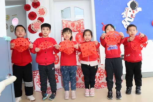 走进济南市天桥区滨河幼儿园,处处能感受到非遗传统文化的气息,布贴、彩泥、叶贴、扎染、编织、造纸、剪纸、泥塑……在布贴画中,孩子们对颜色有了更加清晰的认知;在制作泥塑时,孩子们提升了自己的观察和探索能力,在动手动脑中实现自主发展;收集银杏树叶,拼贴制作出一个美丽的“芭蕾女孩”,在色彩缤纷的树叶中感受自然乐趣;一把剪刀、一张纸,人间的千姿百态通过孩子的想象力跃然纸上,小组分工合作的方式让幼儿学会了沟通与合作。作为首个获得“济南非物质文化遗产传承基地”的幼儿园,滨河幼儿园如今已实现了“班班有特色,人人会非遗”,孩子们在优秀传统文化的滋养下享受着美好童年。