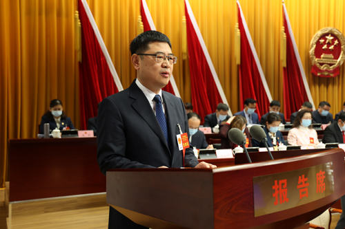 槐荫区委副书记、区政府党组书记、代理区长刘敬涛作政府工作报告