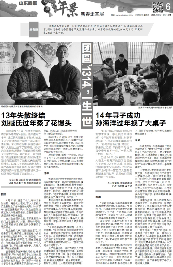 后来的故事,堪称一个奇迹。2022年1月7日,刘业金在招远见到了失散13年的母亲。5天后,随着DNA比对结果的公布,刘业金前往招远把刘臧氏接回了高密老家。