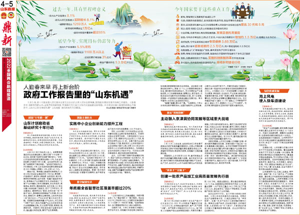 3月5日,第十三届全国人民代表大会第五次会议在北京人民大会堂开幕,国务院总理李克强作政府工作报告。人勤春来早,创新争先的山东,正聚力实现新突破,开创新时代社会主义现代化强省建设新局面。从总理这份催人振奋的政府工作报告中,山东可以抓住哪些机遇?山东商报·速豹新闻网为您解读。◎山东商报·速豹新闻网记者 刘建宇