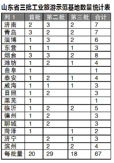 山东省文旅产业创新研究院通过梳理前后三批67个省级工业旅游示范基地发现:从年份上看,2017年首批示范基地名单共有20个,2020年公布两批名单共47个,占三批总量的70%,可见至2020年,山东的工业旅游已进入了快速发展时期,同时也加速了工业旅游品牌做强进程和工业转型化升级。从城市入选数量看,山东工业、经济发展较快的城市入选数量更多。烟台三批共入选8个,数量居全省第一;济南、青岛各7个并列第二,而且各市突出当地工业特色,凝聚发展新优势。