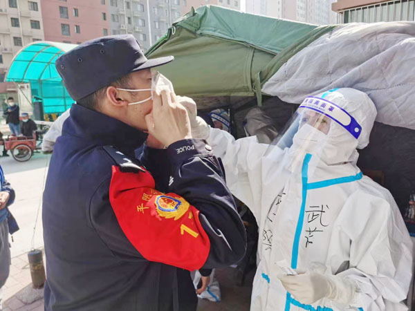 有的居民行动不便,不能下楼采样,为了做到应检尽检,武芹便和社区街道工作人员一起,奔波在小区的各个楼层。信息登记、消毒采样……大家忙得不亦乐乎。“一层层楼爬下来,常常感觉吃不消,但我们多跑跑,能最大程度减少老人的不便,看到老人们满意的笑容,听着真诚的感谢,我们觉得一切付出都是值得的。”武芹笑着说。这一瞬间,所有的苦累都化成了一缕微笑,它带给队员们的不仅仅是鼓舞和激励,更是医务工作者人生价值的体现。