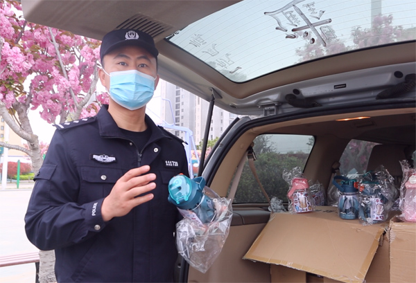 民警向记者展示嫌疑人用于诱骗群众的小礼品 (警方供图)
