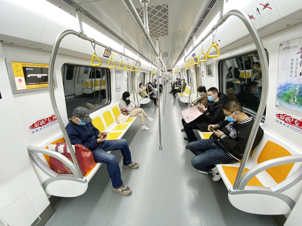 昨日,济南地铁线网全面恢复正常运行。这是济南地铁2号线一列车内景 记者 王晓峰 摄