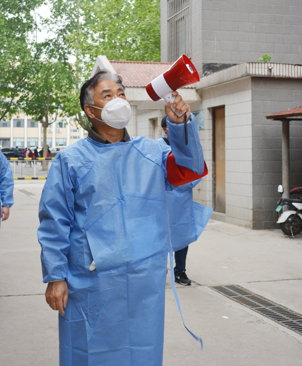 刘永海是一名拥有30年军龄的退伍“老兵”,也是一名拥有47年党龄、20年社区工作经验的退休老同志。2014年接受采访时,刘永海曾承诺,“我退休后,还会回社区做一个志愿者。”面对今年疫情形势的变化,刘永海实现了八年前的诺言,69岁的他穿上防护服,拿起扩音器,挨家挨户通知居民及时进行核酸检测,直到深夜……