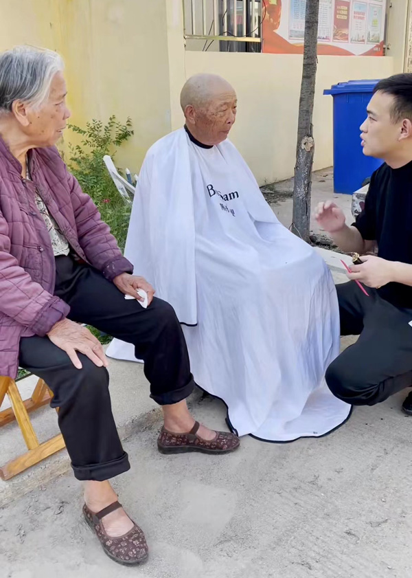 “最初,我的出发点是给老人们理发,但一听免费,他们是拒绝的。”让永庆说,他理解老人们的反应,“就算是现在,他们也说‘天上没有掉馅饼的事’。”经过一番考虑,让永庆改变了与老人沟通的方式,试着先和老人们聊天拉近彼此之间的距离,“比如他们在田边或路边坐着干什么?我先跟他们聊聊家常,到最后再说我是干什么的——我是理发师,我是来给老人做一些义务服务的。”就这样,村中的老人对他熟悉了起来。后来,让永庆还会拿出自己拍摄的视频“自证清白”:“你看我都为这么多老人服务了,都是免费的,放心就行。”