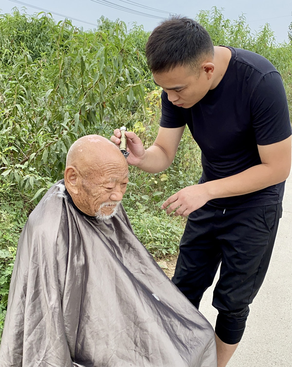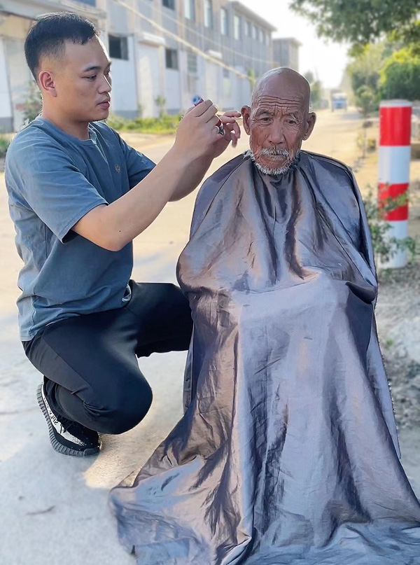 2020年,本报记者曾采访过他,当时的他刚刚走上为乡村留守老人免费理发的道路。而今过去两年的时间,他走过了临沂的一百多个村子,为一千二百多人理发。从最初常被老人拒绝而感到沮丧,到现在他能坐在马扎上和老人们一聊就聊一个多小时,让永庆经历了不长不短的两年时光,而他也与许多老人成了 “忘年交”。
