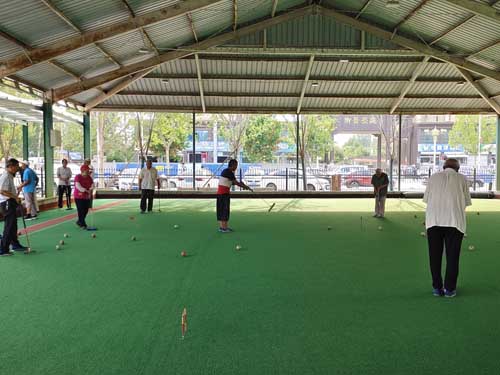 菏泽东明一处门球场内,一群老年人正在切磋球技记者 张淑婷 摄