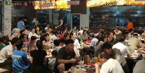 记者发现,现场就餐者以家庭群体、年轻消费者和中年男性为主,家庭群体多倾向于烤串、炒菜及饮料,年轻消费者、中年男性餐桌上则以烤串、凉菜、啤酒等为主。在场的一位消费者向记者表示:“忙碌了一天,下班和朋友一起聚一下,我们一致认为‘撸串’最有代表性,尤其要点夏季必备的‘麻辣小龙虾’。大家共同撸个串、喝个酒,得到的不仅是味蕾上的享受,还有心灵上的放松。”