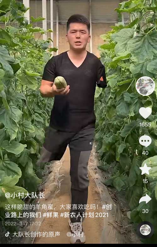 这让李阳看到了希望,他开始尝试直播并拍摄更多短视频,并及时观察客户的反馈,提供质量更佳的农产品。起初,他卖过大蒜、西红柿、玉米,如今的招牌特色是“西瓜红地瓜”“贝贝南瓜”等。“今年贝贝南瓜卖得非常多。”李阳说,上一年“贝贝南瓜”的销量达到了10万斤,这也解决了潍坊一百个左右的大棚销量。