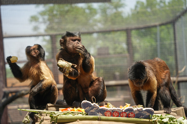 6月3日上午,济南市公园发展服务中心在动物园举办了“关爱动物 共度端午”亲子DIY动物粽子活动。现场游客根据工作人员准备的食谱,纷纷亲自上阵为动物们准备了各具特色的主题粽子美食,让动物们一饱口福。随后,大家来到动物们家里现场观看它们吃粽子,相信看着可爱的动物们享用自己亲手制作的爱心粽子,幸福感爆棚。