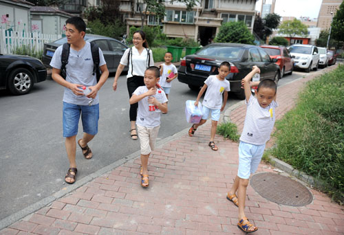自从四个孩子到来后,焦女士就一直辞职在家,做过团购、经营过网店,现在她又开起了小饭桌。“开小饭桌也是为了能更好地照顾他们,很多家长也都是冲着这四兄弟来报名的。自己的孩子也在这吃,肯定差不了,况且我做饭还可以。”焦女士说。