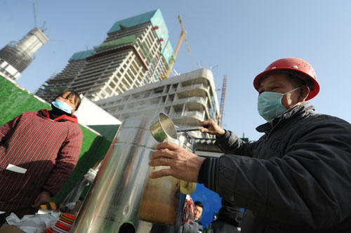 水饺摊摊主名叫史继兰,今年32岁,家住姚家庄附近,起初在建筑工地周边卖包子为生,天气转凉后卖起了水饺。“最开始卖水饺是8元30个,工人们买一份不太够吃,买两份就吃不了,于是我就改成了8块钱管饱,只要不浪费就行。一个人吃不了多少水饺,最多的也就吃五六十个,这么冷的天,主要是让他们吃上口热乎饭。”史继兰说道。