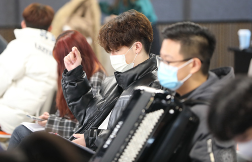 候考的考生们还在紧张地练习